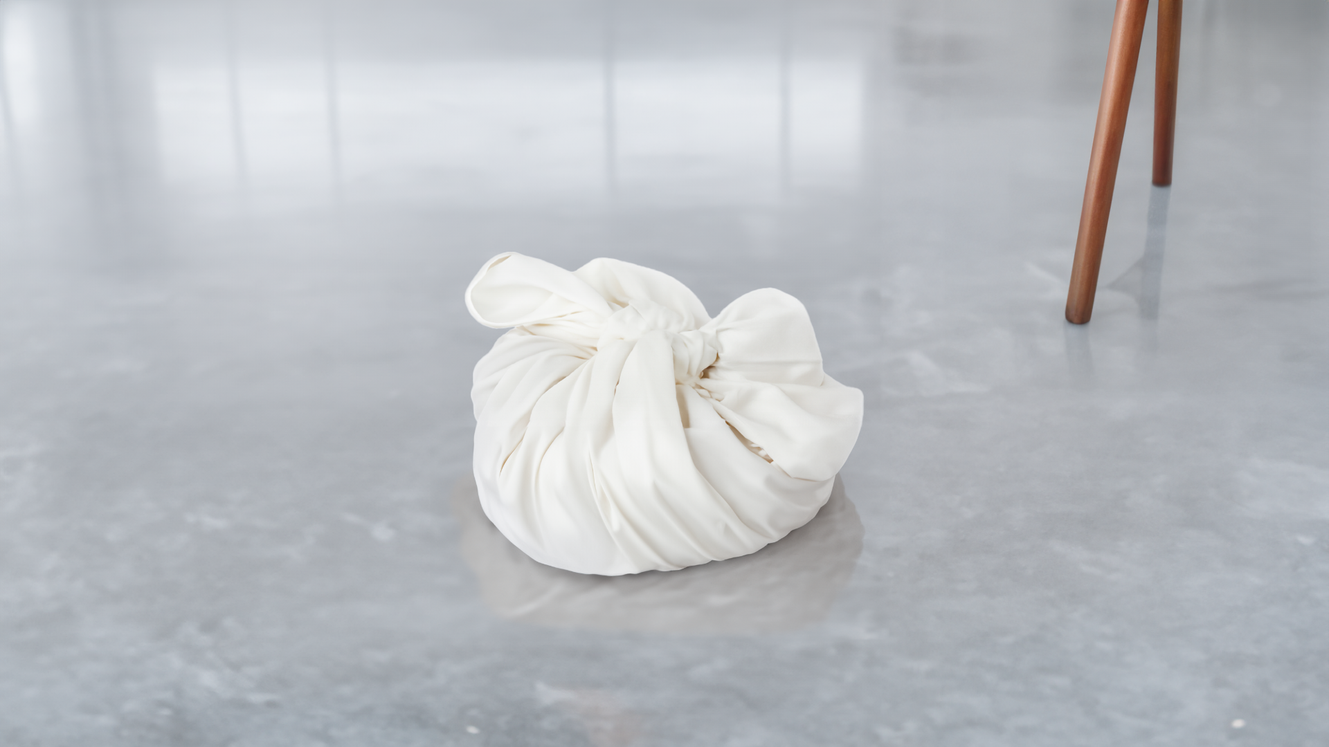 Phase 1: The performer walks in the room and enters the stage holding a white blanket containing rocks (and pebbles, but will be called rocks in this document to avoid confusion) collected before the performance. Then, unfold the blanket on the